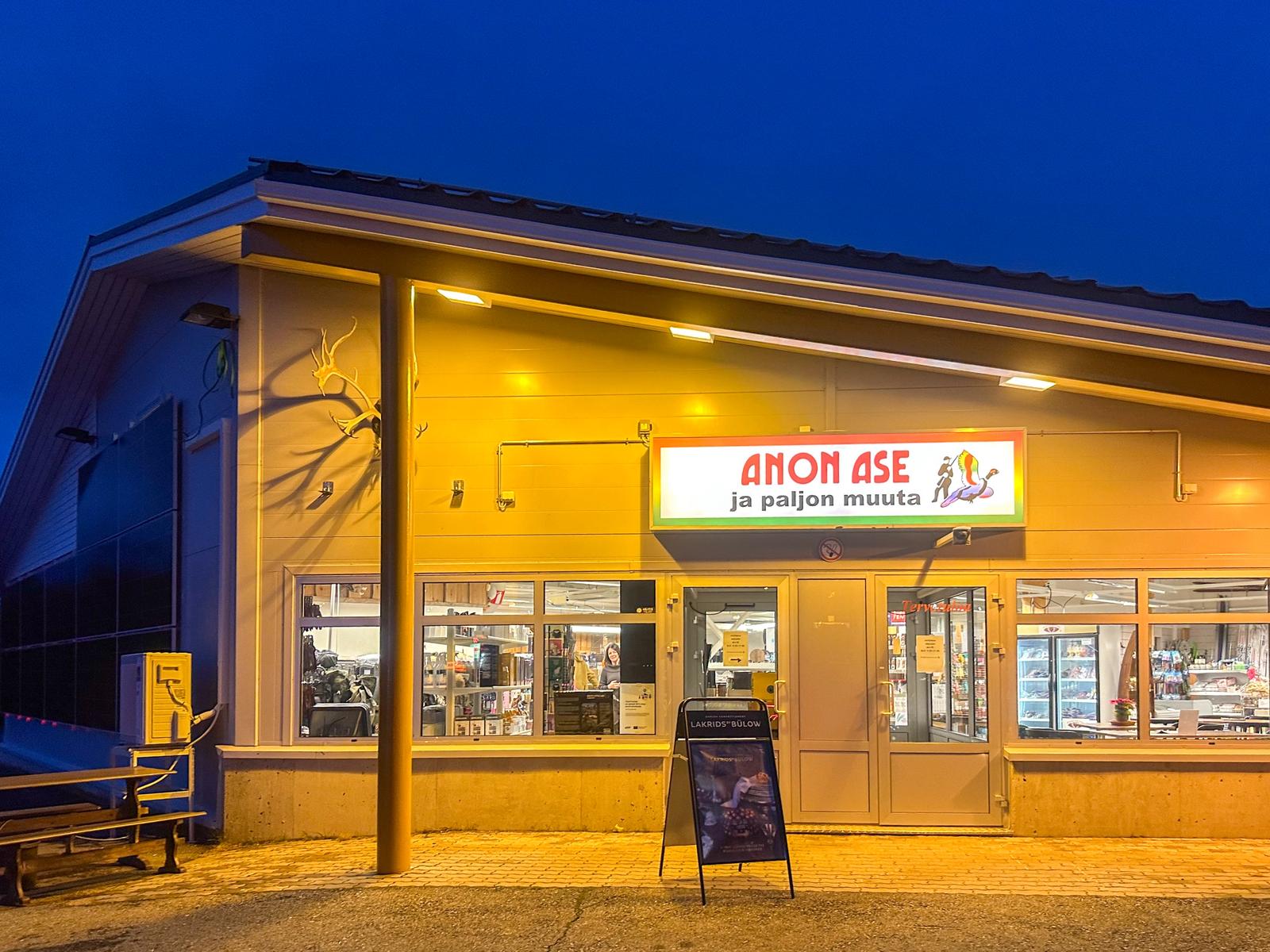 Hyllyistä löytyy tuotteita myös mökkituliaisiksi ja ruokapöytään, lemmikeille sekä makeannälkään. Liikkeen katolla loistava kyltti ”Anon ase ja tukku sekä paljon muuta” kuvaakin osuvasti toimintaa. Ruokatuotteet, kuten poronliha, ja laaja lakritsivalikoima ovat löytäneet asiakkaansa.