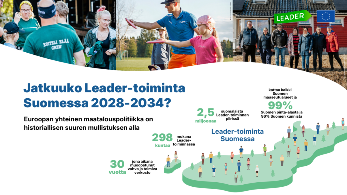 EU-komissio on julkaissut esityksensä uudeksi pitkän aikavälin rahoituskehykseksi (MFF) ajalle 2028–2034. Euroopan yhteinen maatalouspolitiikka on historiallisen suuren mullistuksen alla. Maaseudun kehittäminen, kalatalous, aluekehittäminen ja maataloustuet sekä sisäasiainrahasto yhdistyvät saman kokonaisuuden eli yhden rahaston alle. Maaseudun kehittämiseen kohdistuva rahoitus on merkittävästi vähenemässä, ja Leader-toiminnan asema EU-tason asetuksissa muuttuu.