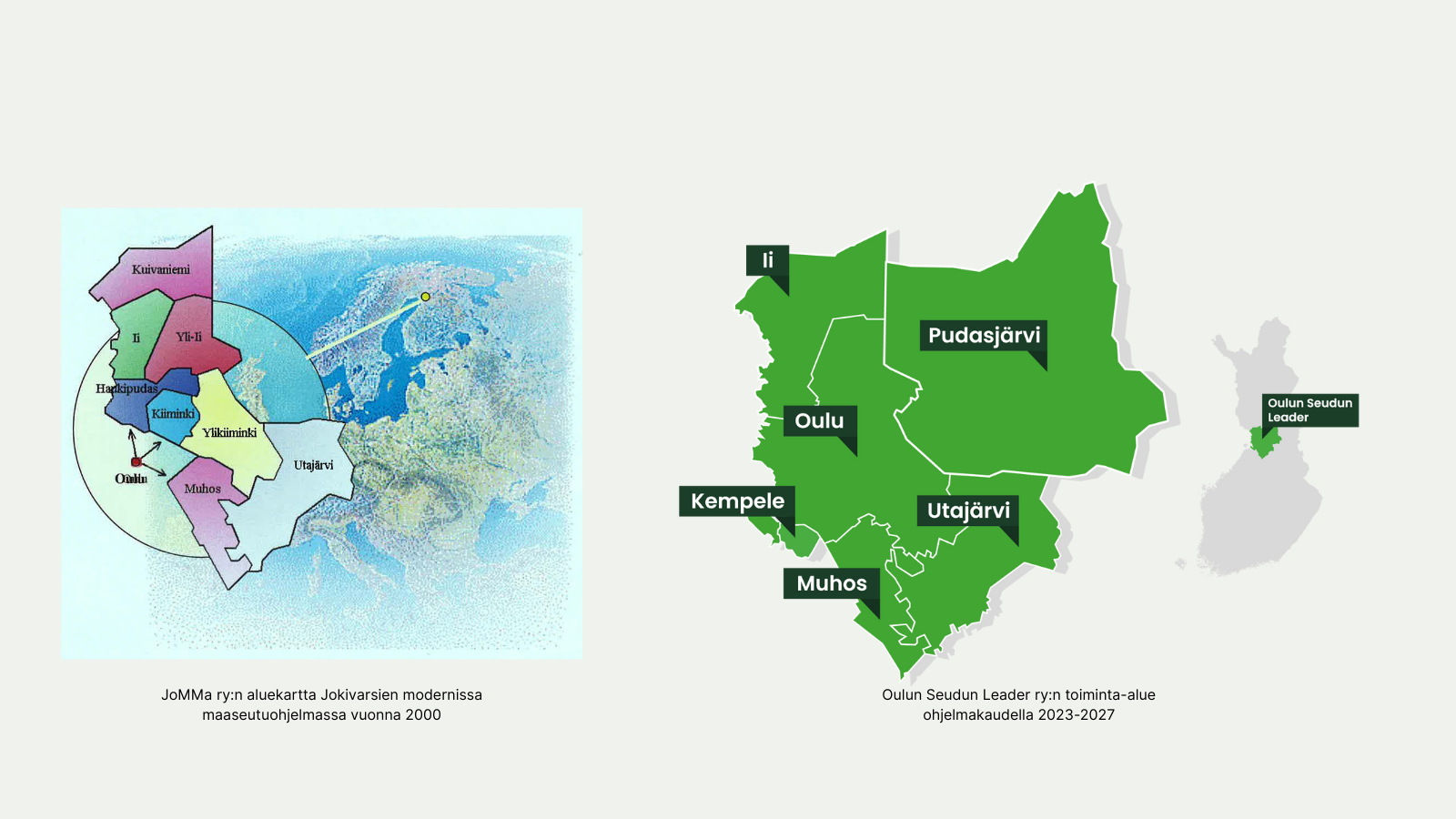 Vuosituhannen alussa toiminta-alue näytti erilaiselta kuin nykyään. Aluksi mukana olivat Haukiputaan, Iin, Pudasjärven Kiimingin, Kuivaniemen, Muhoksen, Utajärven, Yli-Iin ja Ylikiimingin kunnat. Yhdistys toimi JoMMa ry:nä aina vuoteen 2013, jolloin suunniteltiin uutta toimintakautta ja muutettiin nimi Oulun Seudun Leader ry:ksi.
