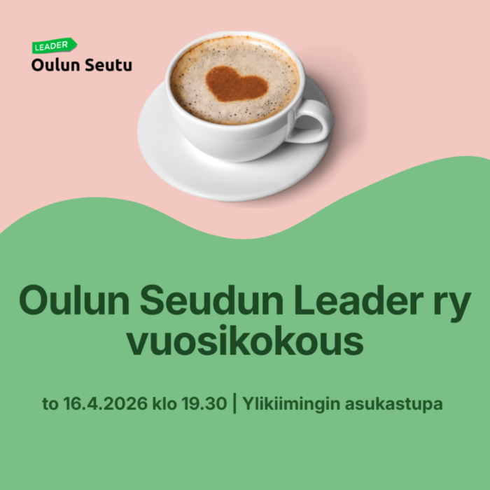 Oulun Seudun Leader ry:n sääntömääräinen vuosikokous järjestetään torstaina 16.4.2026 klo 19.30 Ylikiimingin asukastuvalla osoitteessa Harjutie 18, 91300 Ylikiiminki, Oulu. Valtakirjojen tarkistus alkaa klo 19.00.